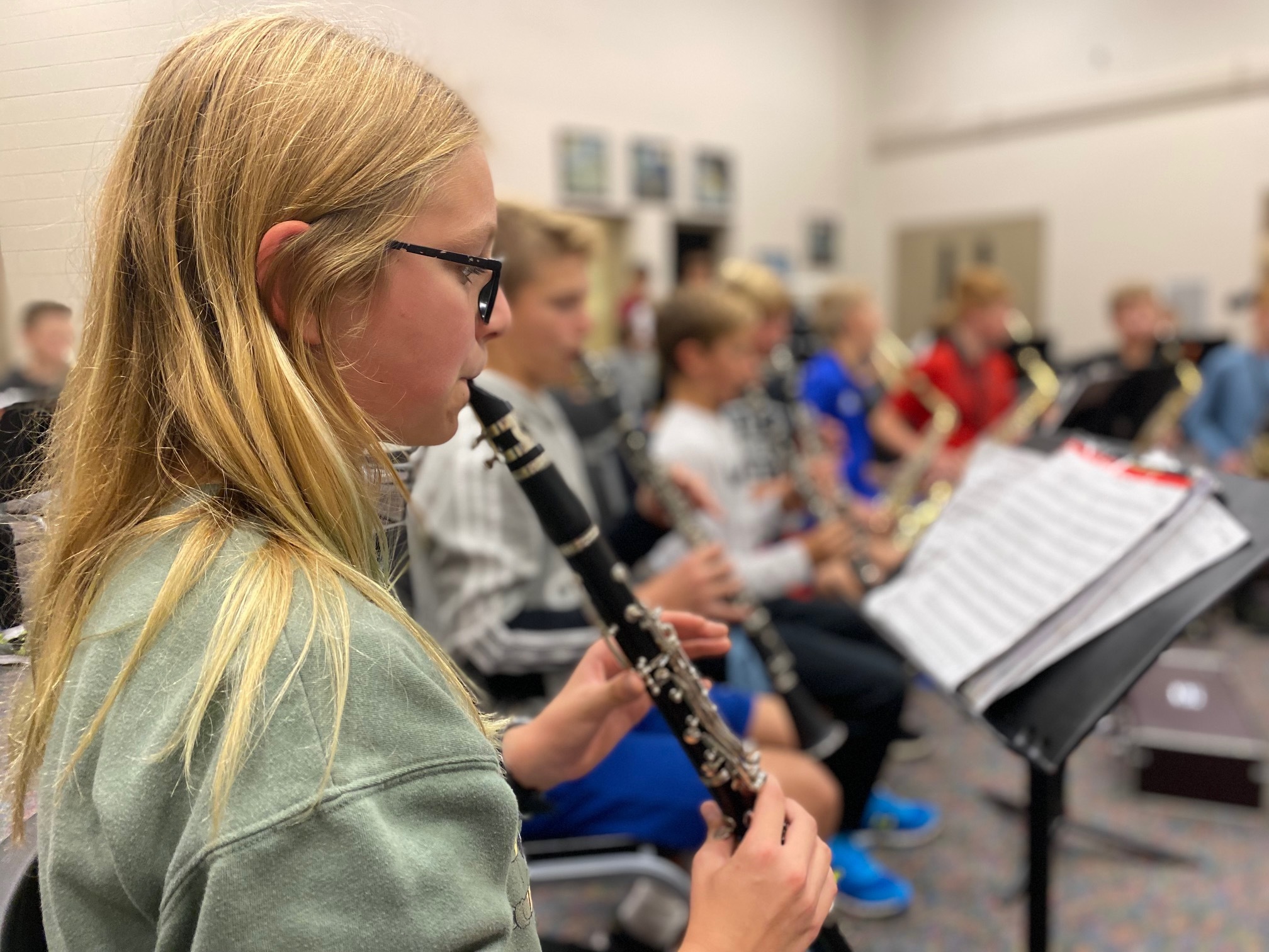 Band at Dutton Christian starts in fifth grade and is kicked off by a two-day band camp two weeks before the start of school. This camp allows students to learn the basics of their instruments and even a few notes and music basics before school even starts! The goal of the band program is to prepare students for musical success beyond middle school. Students will learn basic music theory, work towards the mastery of their instrument, how to apply concepts learned in band to other areas of music and much, much more. Students play in various concerts throughout the year, including special performances for Christmas, Grandparents Day, and an end of the year Pops Concert. The highlight of middle school band is the attendance of band festival. Festival is a wonderful opportunity for students perform out in the community and to see other bands that are working towards the same goals.