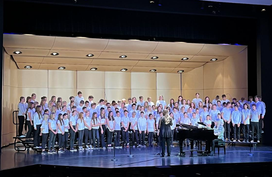 Students meet twice a week and sing a variety of songs to prepare for upcoming performances. All 6th grade students are required to participate in choir and 7th and 8th graders are combined in choir if they’re not in band or orchestra, or if they choose it as an elective. We look at many styles of music and especially music in worship. We explore singing and the special gift it is from God and how we should use it to honor Him. We also sing a hymn each month to build a repertoire of music that can extend into our church and spiritual lives. The choirs perform many times throughout the year with the bands and orchestras and also have the opportunity in the winter to have just a choir concert.