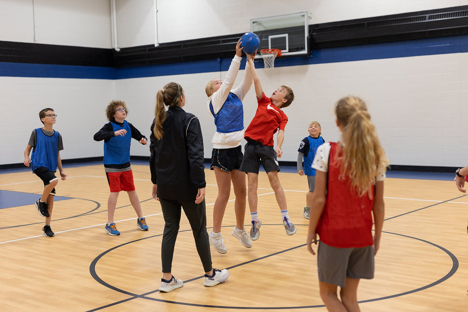 In P.E., students meet twice a week to engage in various physical activities. The hope is that students will develop a love for movement and skills to lead them towards a healthy lifestyle. Our bodies are a gift from God and it is our responsibility to take care of this precious gift. Students have the opportunity to learn and participate in multiple sporting activities and other fitness-related units throughout the year. These activities include soccer, football, floor hockey, basketball, volleyball, fitness, and more. Along with the activities, students will learn how to deal with competition, encourage classmates, practice sportsmanship, and understand how teamwork is essential for the P.E. classroom.
