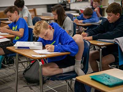 Middle school students are offered a variety of new opportunities both in and out of the classroom to serve and develop their gifts. We strive to prepare students for high school by developing organization skills, responsibility, higher order thinking, and collaboration with peers. Our hope is for our students to see the value in themselves and others as we are each created in the image of God.